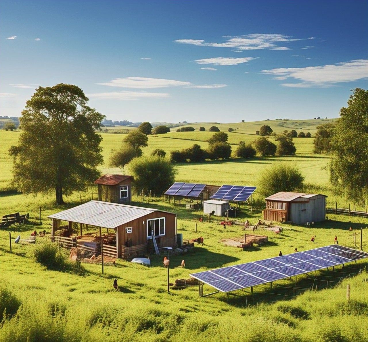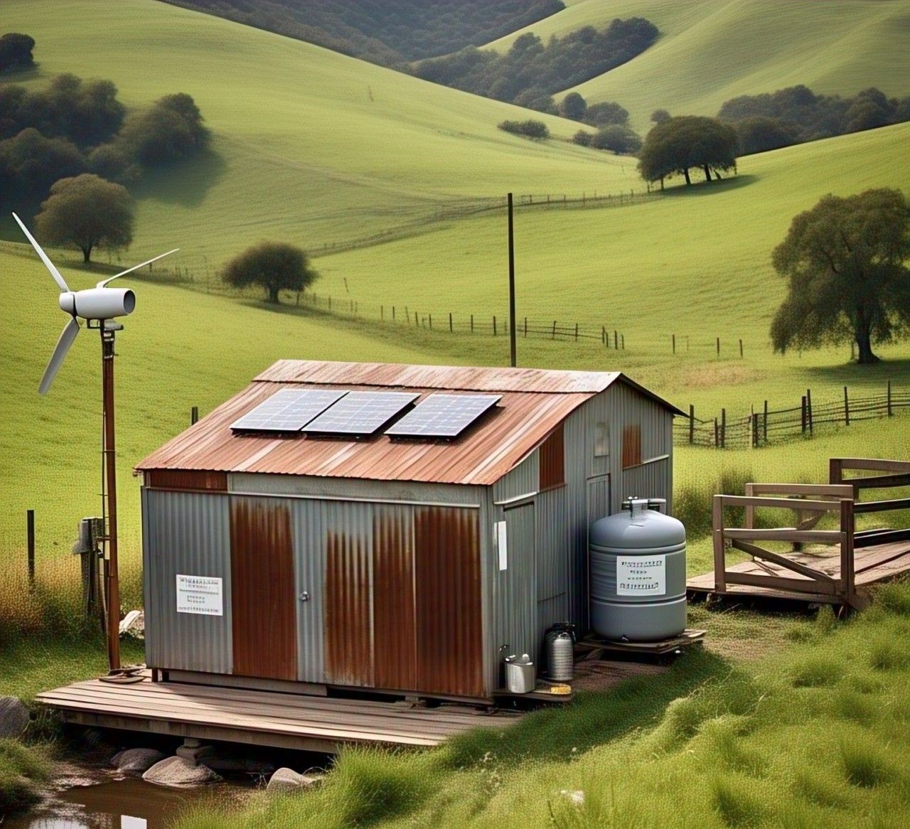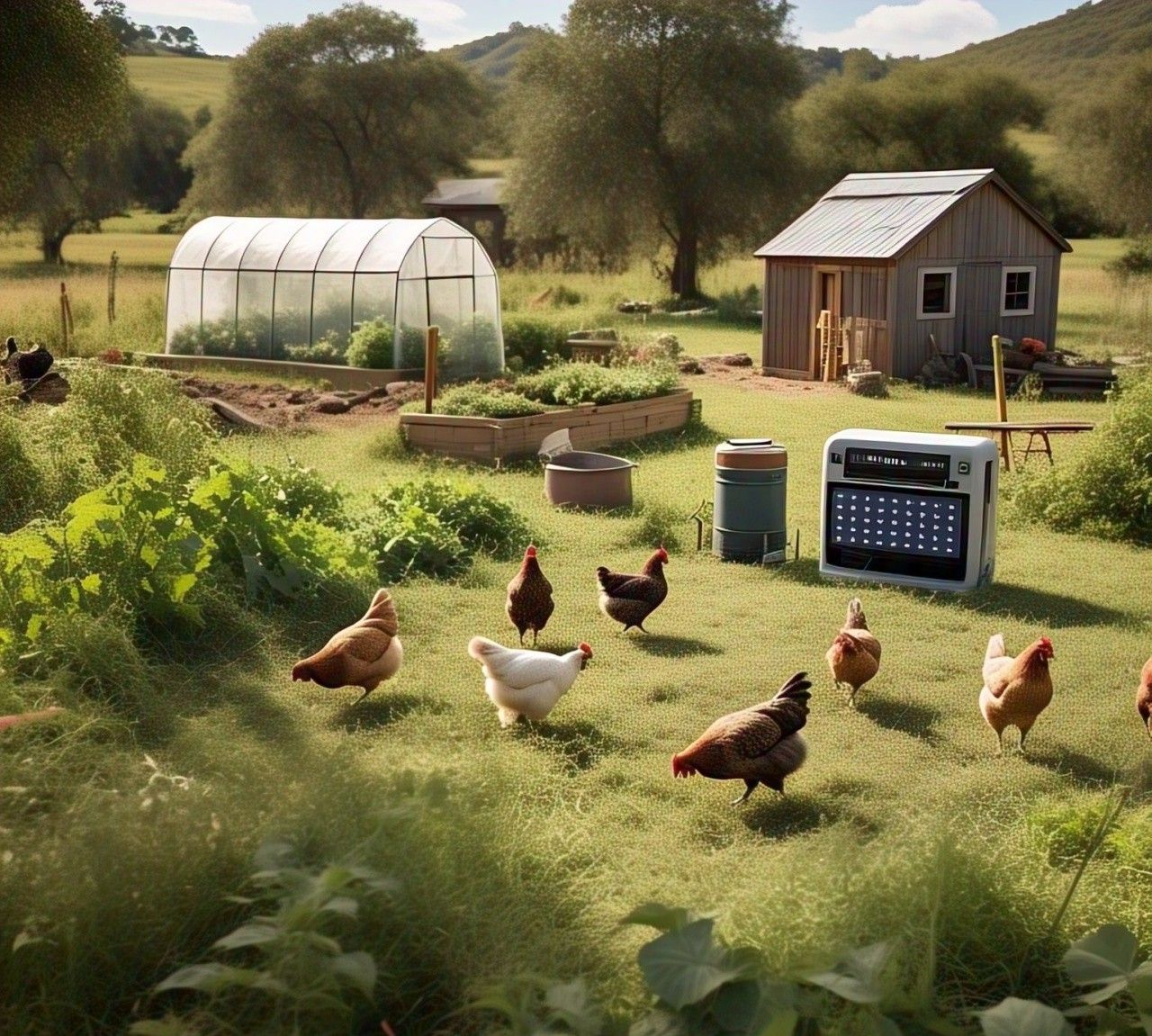 At the heart of the farm is the AquaVolt Home Oasis: a patented, battery-free energy system that produces water, power, and agricultural stability using the sun, wind, and hydrogen. It powers our lights, pumps, greenhouses, and even helps grow food more efficiently.